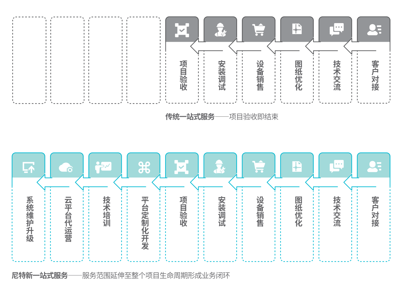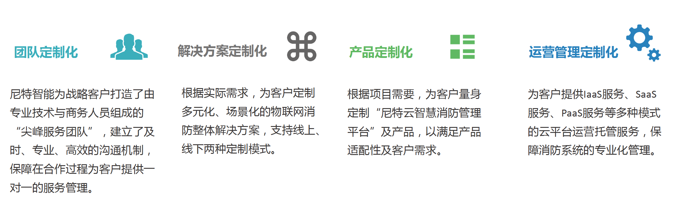 尼特智能將設備銷售過程轉變為覆蓋項目全生命周期的服務模式,涵蓋方案制定、圖紙優化、調試驗收、上崗培訓等基礎內容,同時推出以智慧消防云平臺為載體的定制化開發、系統維護與升級、運營管理等后續服務,讓服務更加系統全面。