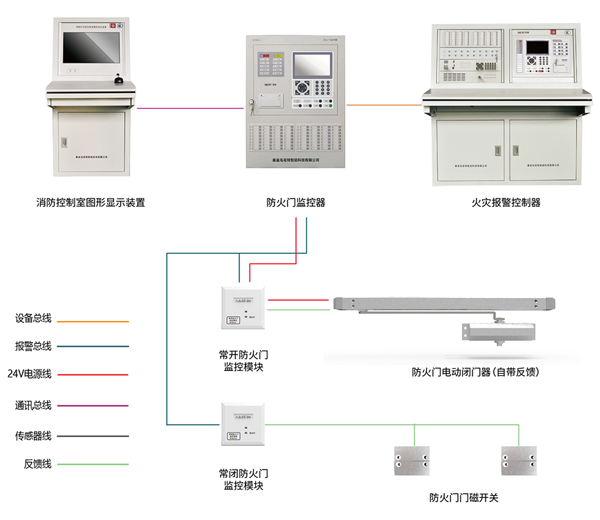 尼特防火門監(jiān)控系統(tǒng)分為“二線制”解決方案和“四線制”解決方案,系統(tǒng)符合國家標準 GB29364-2012《防火門監(jiān)控器》,采用 FT-BUS 全數(shù)字總線技術,主機自帶 63 點總線 控制盤;單機容量 2000 點,可通過 CAN 總線實現(xiàn) 200 臺主機聯(lián)網(wǎng);門磁開關和電動閉門器采用兩總線工作方式。 系統(tǒng)可通過 RS485 接口與消防控制室圖形顯示裝置連接,具有高可靠性和廣泛的工程適應性。