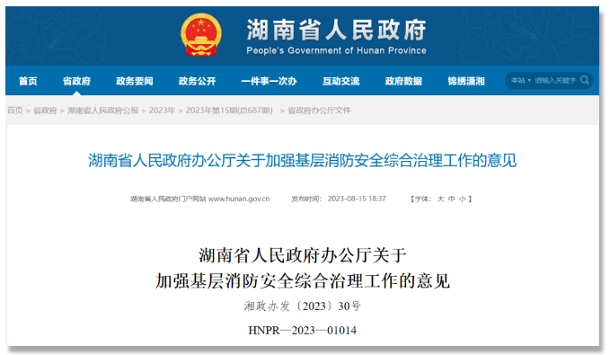 為全面加強全省縣鄉村消防安全體系建設,統籌推進城鄉消防安全綜合治理,夯實火災防控基礎,根據《中華人民共和國消防法》《中華人民共和國突發事件應對法》《湖南省實施〈中華人民共和國消防法〉辦法》《湖南省消防安全責任制實施辦法》等法律法規規章和有關文件規定,經省人民政府同意,現就加強基層消防安全綜合治理工作提出如下意見。
