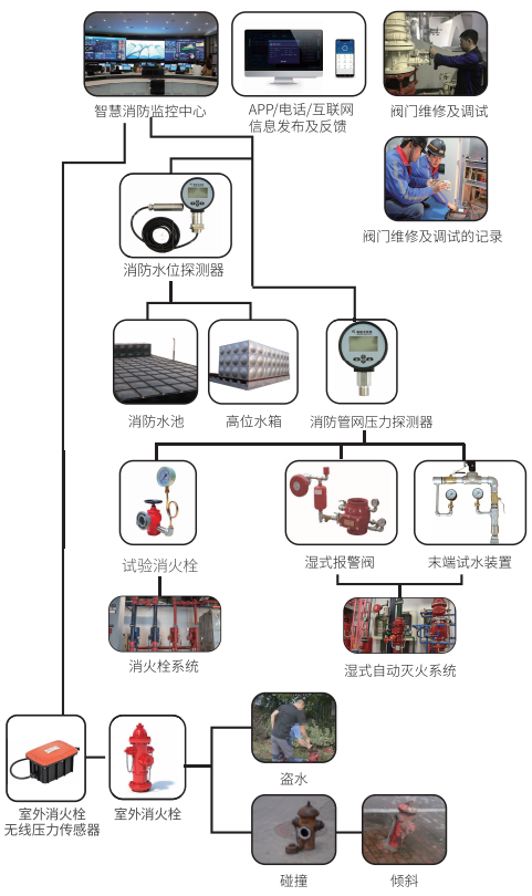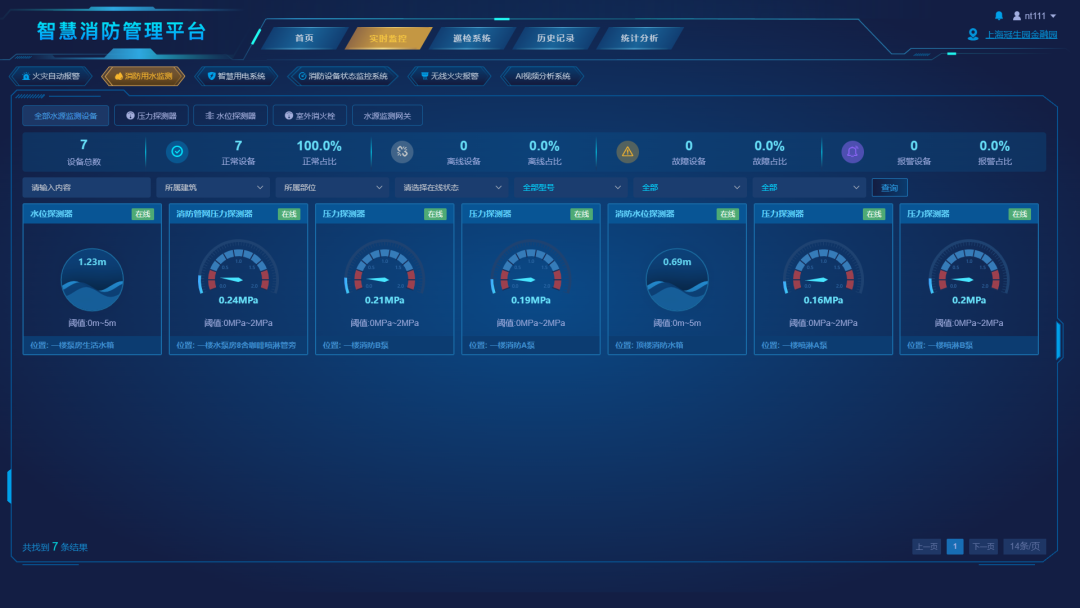 作為滅火必備的“彈藥”,消防水系統(tǒng)是否完善,直接影響火災(zāi)的撲救效果。由于冠生園互聯(lián)網(wǎng)金融園區(qū)消防水系統(tǒng)分布面廣,設(shè)備種類(lèi)多,點(diǎn)位分散,完全依靠人工巡查方式作量大、效率低,面對(duì)突發(fā)情況時(shí),難以實(shí)時(shí)掌握到消防水系統(tǒng)各項(xiàng)數(shù)據(jù)、準(zhǔn)確掌握水量供應(yīng)。