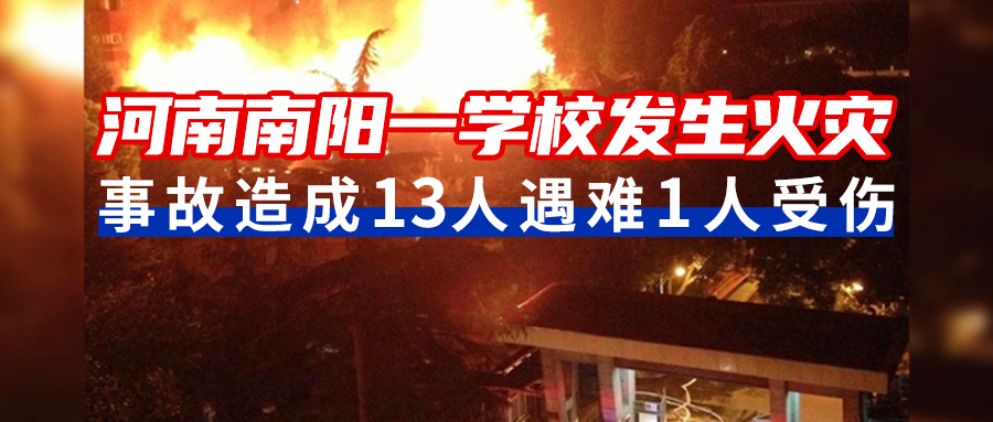 1月19日23時00分,河南南陽方城縣獨樹鎮硯山鋪村英才學校一宿舍發生火災,事故造成13人遇難,1人受傷,教訓深刻,令人痛心,警鐘長鳴!