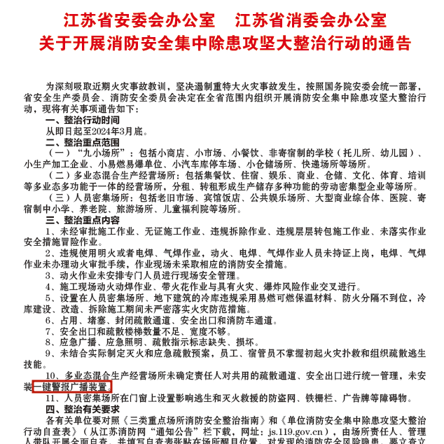 某“園中園”項(xiàng)目積極響應(yīng)政策號召,在園區(qū)樓道、門衛(wèi)室等場景安裝了尼特智能一鍵式聲光報警器,通過4G通信接收聯(lián)動報警指令,發(fā)出高分貝警報鳴笛及閃燈警示,同時尼特云智慧消防管理平臺將報警信息以微信、短信、電話等形式推送到管理員的手機(jī)上,確保火情信息的及時傳達(dá),彌補(bǔ)了園區(qū)內(nèi)未安裝聲光警報設(shè)備的不足,改善了園區(qū)疏散預(yù)警能力薄弱現(xiàn)狀,進(jìn)一步保障人民群眾生命及財產(chǎn)安全。