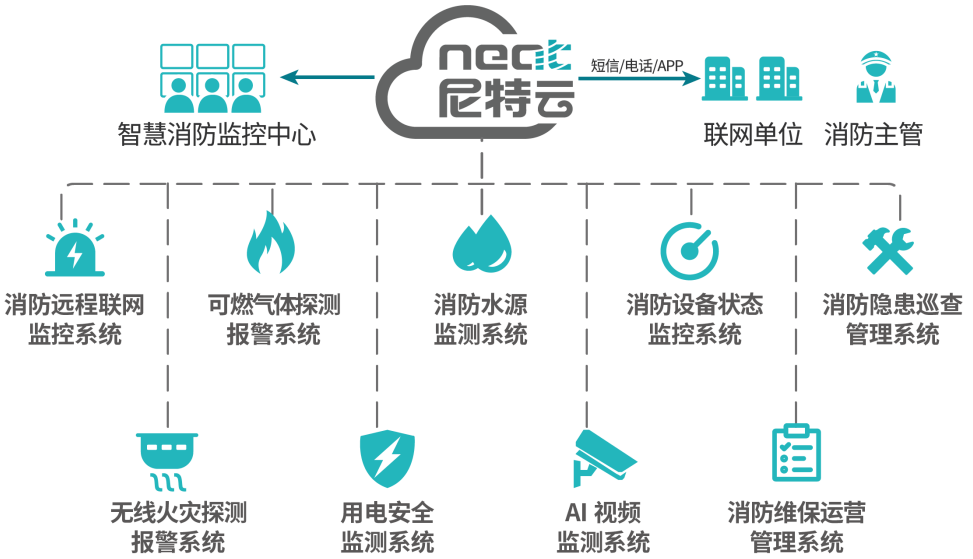 在《意見(jiàn)》中明確指出,鄉(xiāng)鎮(zhèn)(街道)和村(社區(qū))應(yīng)在相關(guān)部門指導(dǎo)下建立風(fēng)險(xiǎn)隱患“一張圖”,暢通預(yù)警信息發(fā)布和傳播渠道。消防安全風(fēng)險(xiǎn)隱患是生產(chǎn)生活中必須要注意的方面,也是提升基層應(yīng)急管理能力的重要一環(huán)。作為國(guó)內(nèi)較早從事物聯(lián)網(wǎng)消防系統(tǒng)研究的企業(yè),尼特智能歷經(jīng)多年的市場(chǎng)探索和經(jīng)驗(yàn)總結(jié),綜合運(yùn)用大數(shù)據(jù)、云計(jì)算、無(wú)線傳感等技術(shù),搭建了一套安全、可靠的智慧消防解決方案,將“人防、物防、技防 ”三結(jié)合應(yīng)用于消防管理和監(jiān)督中,實(shí)現(xiàn)消防管理工作智能化、可視化、痕跡化,切實(shí)滿足《意見(jiàn)》中關(guān)于進(jìn)一步推動(dòng)推動(dòng)公共安全治理模式向事前預(yù)防轉(zhuǎn)型的工作內(nèi)容。
