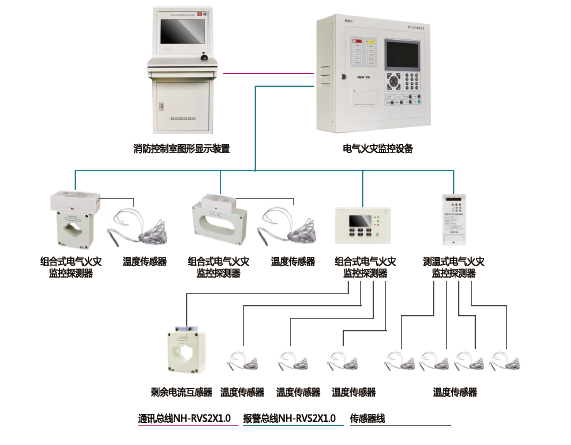系統符合最新國家標準GB14287-2014《電氣火災監控系統》,具有一體式、分體式等多種電氣火災監控探測器,且僅通過二總線連接即可正常工作。NT8021電氣火災監控設備單機容量2048點,可通過CAN總線實現200臺主機聯網。系統可通過RS232/RS485接口實現與消防控制室圖形顯示裝置連接,具有功能完整,選配靈活、運行可靠、節省布線和可擴展性強等特點。