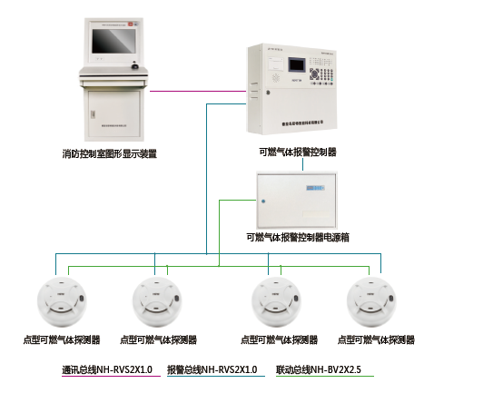 系統符合GB50116-2013《火災自動報警系統設計規范》的設計要求。可燃氣體探測器采用先進的傳感器技術和高效率開關電源技術,平均功耗僅0.55w。可燃氣體控制器單機容量256點,可實現96臺聯網。系統可通過RS232/RS485接口與消防控制室圖形顯示裝置連接,具有功能完善、功耗低、擴展容量大和安裝方便等特點。