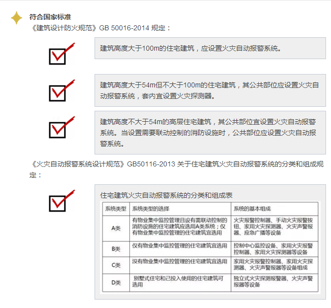 尼特不僅有出色的產品研發能力,在國家標準的編制上也貢獻了自己的力量。尼特參與了家用火災報警控制系統國家標準的編寫,參與編制14X505-1《火災自動報警系統設計規范》圖示,此圖集在家用火災報警控制系統產品選型指導上,也選用了尼特產品。