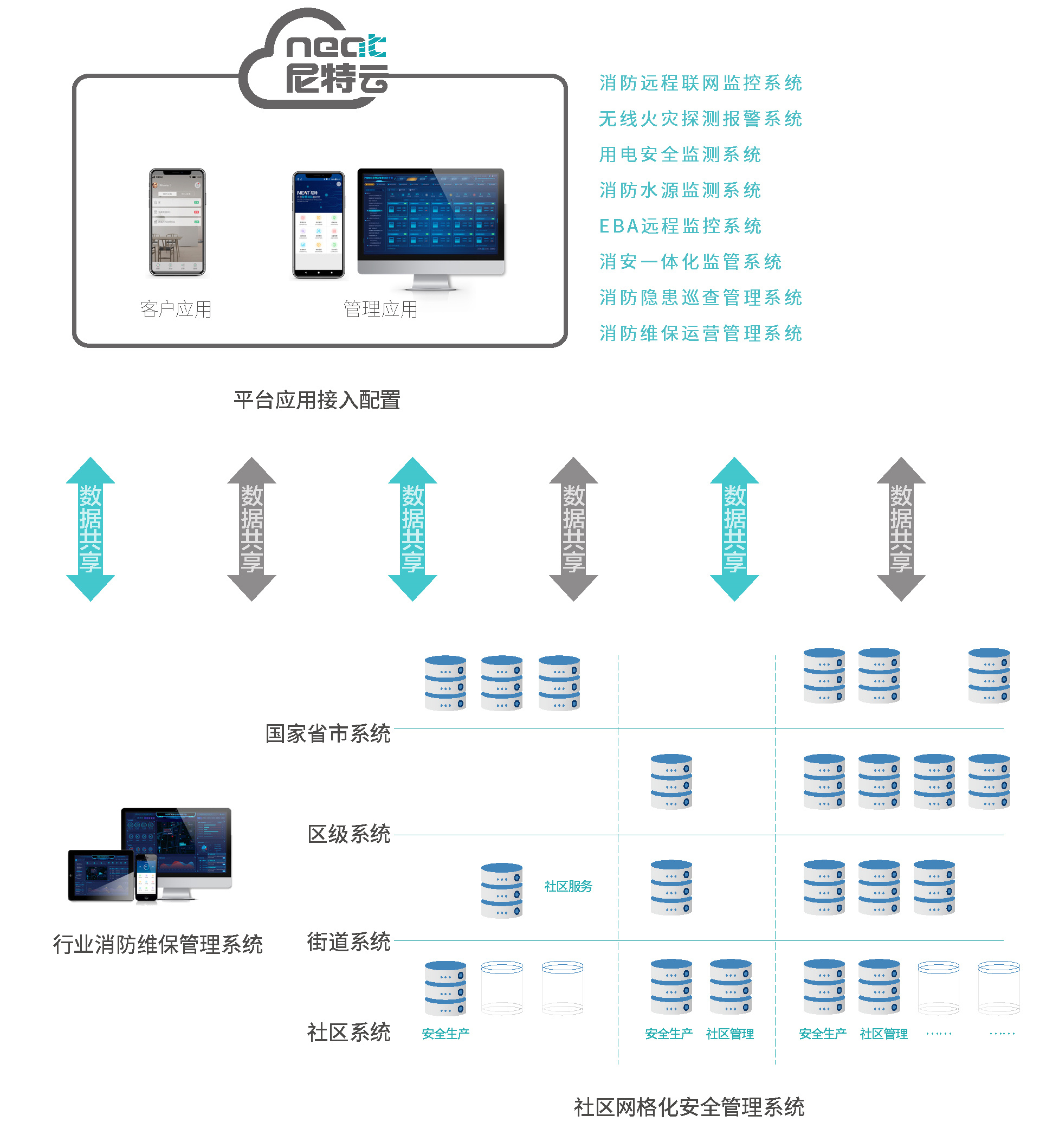 利用物聯網、云計算和大數據分析等技術,圍繞城市消防安全管理需要,打造集展示、防控、監管于一體的城市消防合規運行監測保障系統,具備實時消防安全預警監測、隱患監測、隱患分析、行業監管、網格員管理及技術服務機構管理等功能,全面掌控隱患舉報分析、隱患排查,整改、處置狀態及城市火災風險熱點的分布,通過城市消防“一張圖”城市消防合規運行監測保障系統,不斷提升城市消防安全防控水平。