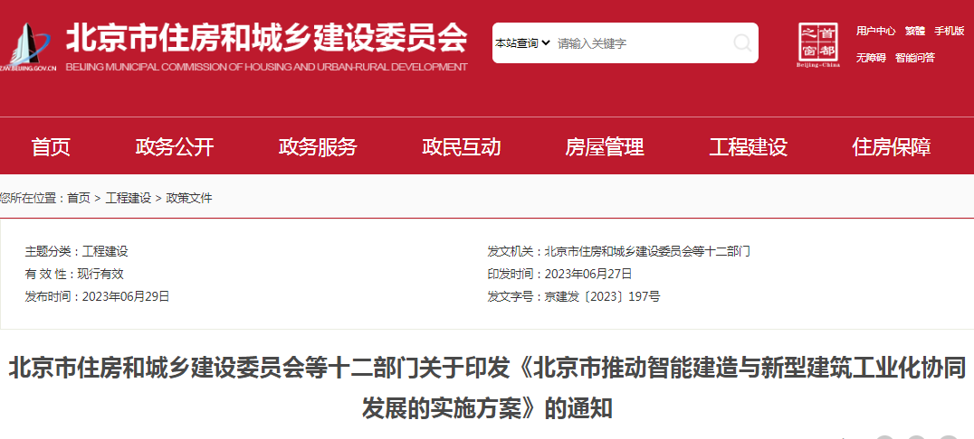 各有關單位: 為更好推進北京市智能建造與新型建筑工業化協同發展工作,北京市住房城鄉建設委等十二部門聯合制定了《北京市推動智能建...